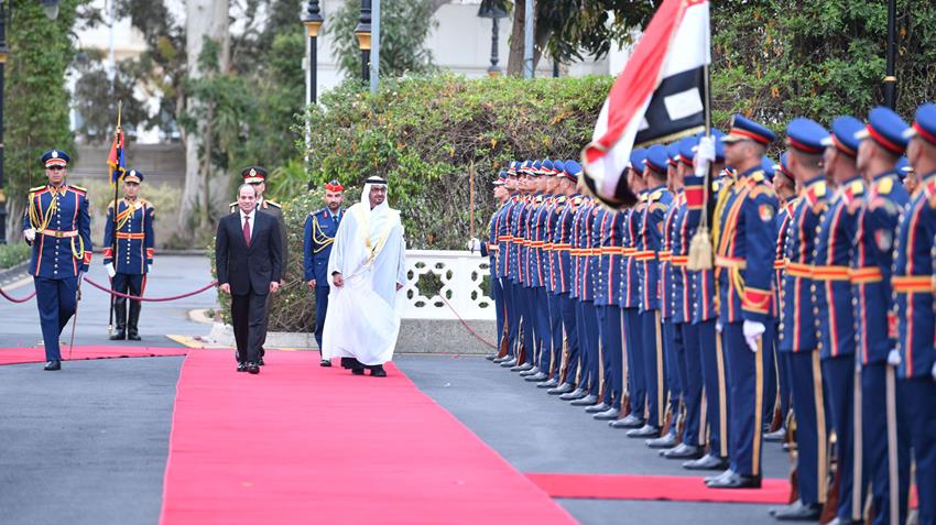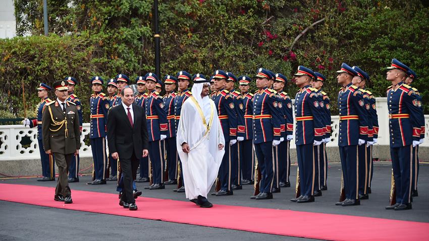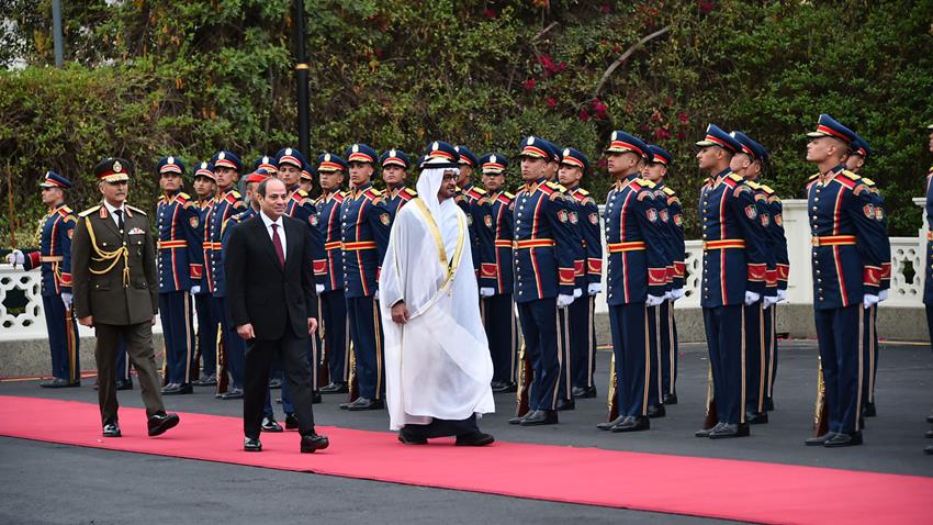 استقبل السيد الرئيس عبد الفتاح السيسي، اليوم بقصر الاتحادية، الشيخ محمد بن زايد آل نهيان رئيس دولة الإمارات العربية المتحدة، حيث أقيمت مراسم الاستقبال الرسمي وتم استعراض حرس الشرف وعزف السلامين الوطنيين.